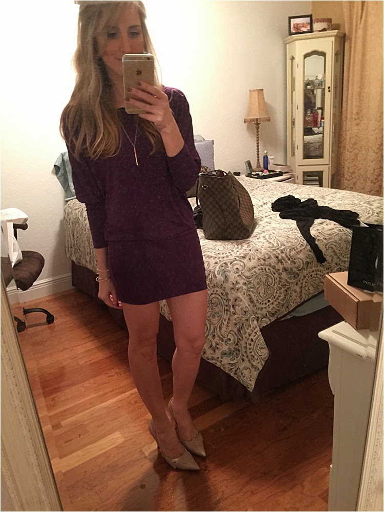 What a fun app, being able to try it all out first. Some T-Swift makes packing a little more bearable. Love the nude pumps and your purple dress. Fierce!